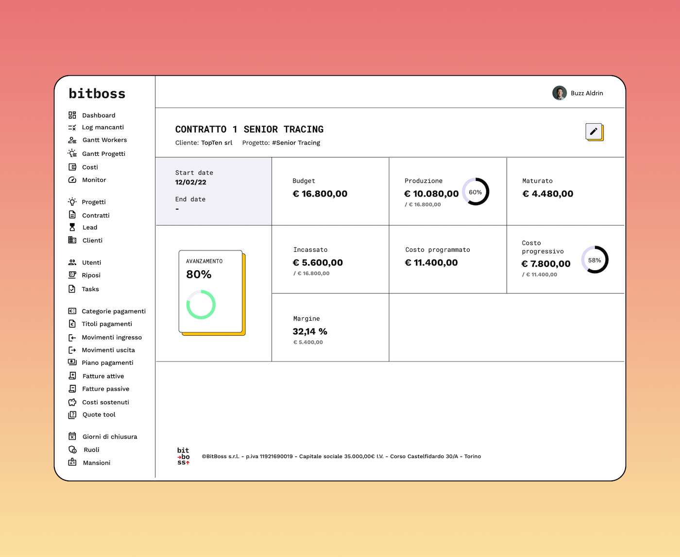 Grazie a questa semplice azione, BBOS permette di monitorare in modo accurato e quasi in tempo reale i costi effettivi di ogni progetto, individuare ritardi in specifiche attività e intervenire con correzioni se necessario.