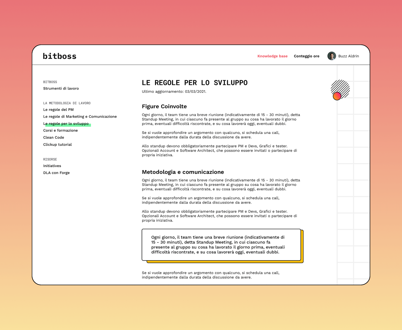In BitBoss realizziamo software custom per clienti esterni e nel farlo affronta la complessità che deriva dalla gestione simultanea di progetti diversi: progetti multipli per clienti diversi, con team variabili e contratti di natura diversa.